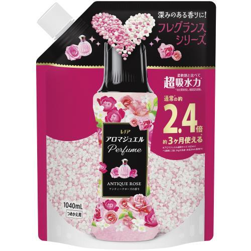 レノア アロマジュエル アンティークローズ&フローラルの香り。上品で深みのあるローズと華やかなフローラルが長時間続く香りづけビーズ。本体420mlとつめかえ1040mlから選べる人気シリーズ。