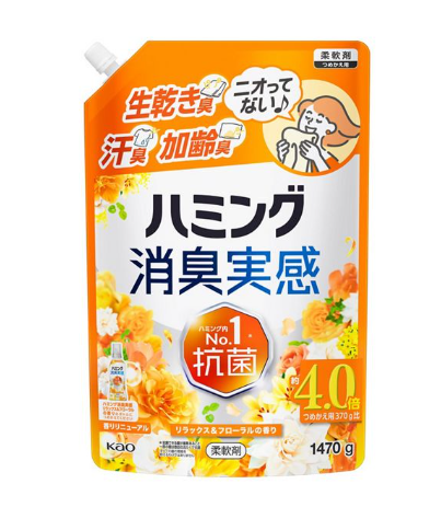 | 仕様 | 【商品仕様】 ・商品名:ハミング消臭実感 リラックス&フローラルの香り ・内容量:本体510g/つめかえ370g・930g・1470g ・用途:衣料用柔軟剤 ・特徴:強力消臭/汗・皮脂・部屋干し臭対策/香り長続き/ふんわり仕上げ ・香り:リラックス&フローラルの香り ・JANコード: - 本体 510g:4901301463456 - つめかえ用 370g:4901301463357 - つめかえ用 930g:4901301463845 - つめかえ用 1470g:4901301463807 ・メーカー:花王株式会社 |