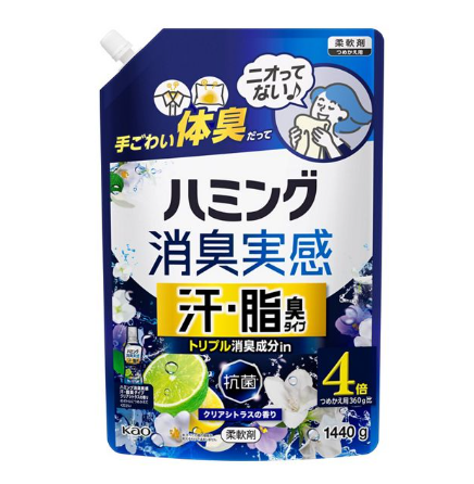 | 仕様 | 【商品仕様】 ・商品名:ハミング消臭実感 汗・脂臭タイプ クリアシトラスの香り ・内容量:本体500g/つめかえ360g・910g・1440g ・用途:衣料用柔軟剤 ・特徴:汗臭・脂臭対策/強力消臭/香り長続き/ふんわり仕上げ ・香り:クリアシトラスの香り ・JANコード: - 本体 500g:4901301463302 - つめかえ用 360g:4901301463364 - つめかえ用 910g:4901301463388 - つめかえ用 1440g:4901301463791 ・メーカー:花王株式会社 |