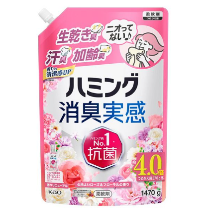 | 仕様 | 【商品仕様】 ・商品名:ハミング消臭実感 心地よいローズ&フローラルの香り ・内容量:本体510g/つめかえ370g・930g・1470g ・用途:衣料用柔軟剤 ・特徴:強力消臭/汗・皮脂・部屋干し臭対策/香り長続き/ふんわり仕上げ ・香り:ローズ&フローラルの香り ・JANコード: - 本体 510g:4901301463289 - つめかえ用 370g:4901301463333 - つめかえ用 930g:4901301463869 - つめかえ用 1470g:4901301463821 ・メーカー:花王株式会社 |