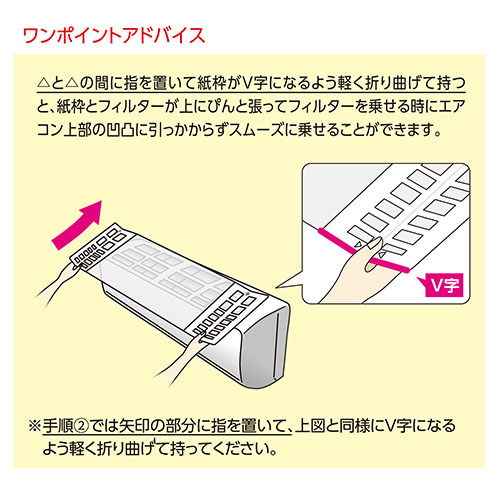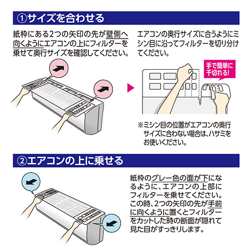 置くだけ簡単!エアコン上部の吸気部分に溜まるゴミやホコリを防ぎ、 エアコン内部の備え付けフィルターの汚れを軽減します!